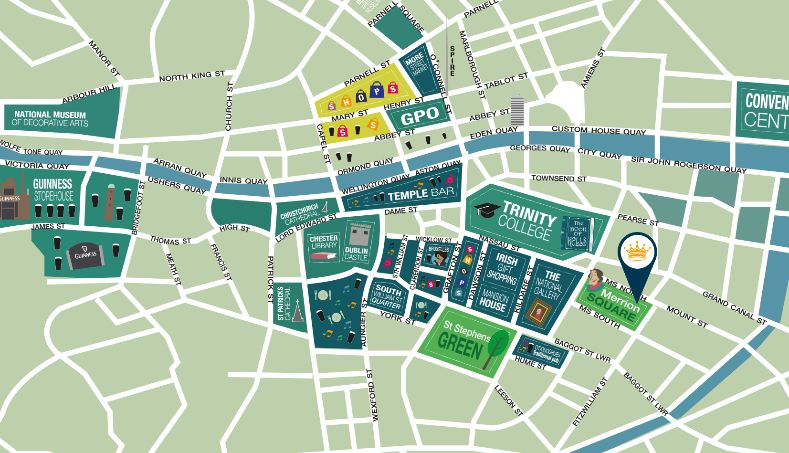 法兰克国王英语学院位于都柏林市中心梅林广场东侧,坐落在美丽的18世纪格鲁吉亚建筑中。 由于学校位于都柏林中心地带,步行即可到达许多著名的观光景点,如圣三一大学(Trinity College)、都柏林城堡(Dublin Castle)以及爱尔兰美术馆(National Gallery of Ireland)等。