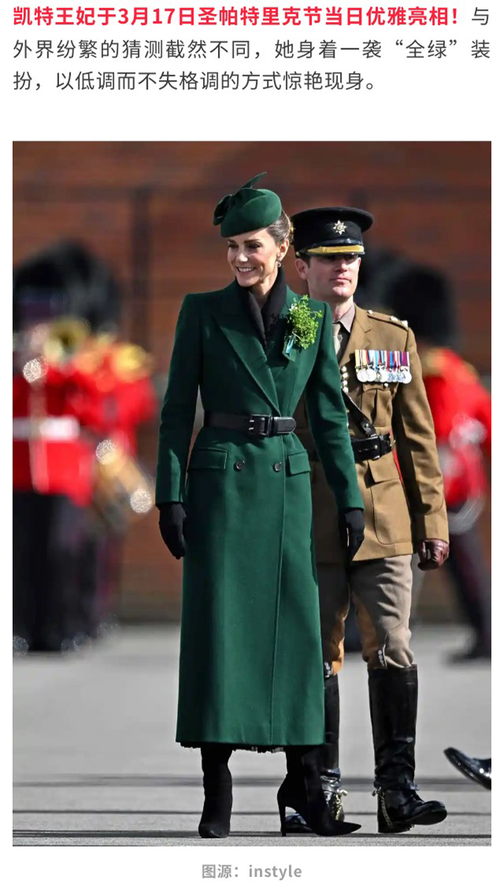 凯特王妃亮相圣帕特里克阅兵,状态超好,姿态优雅,笑容灿烂!