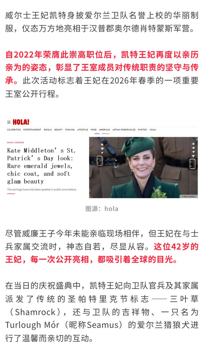 凯特王妃亮相圣帕特里克阅兵,状...